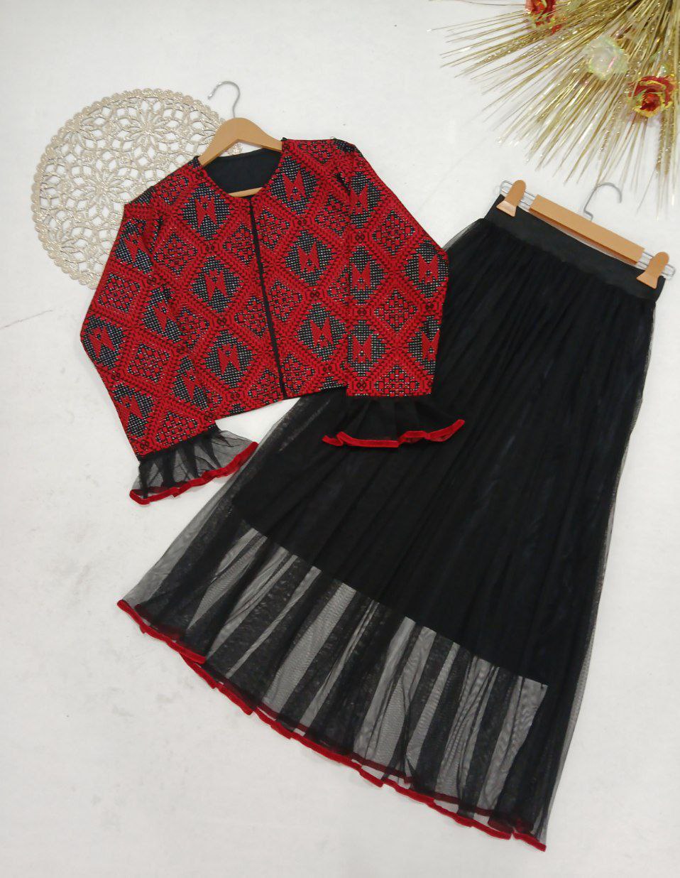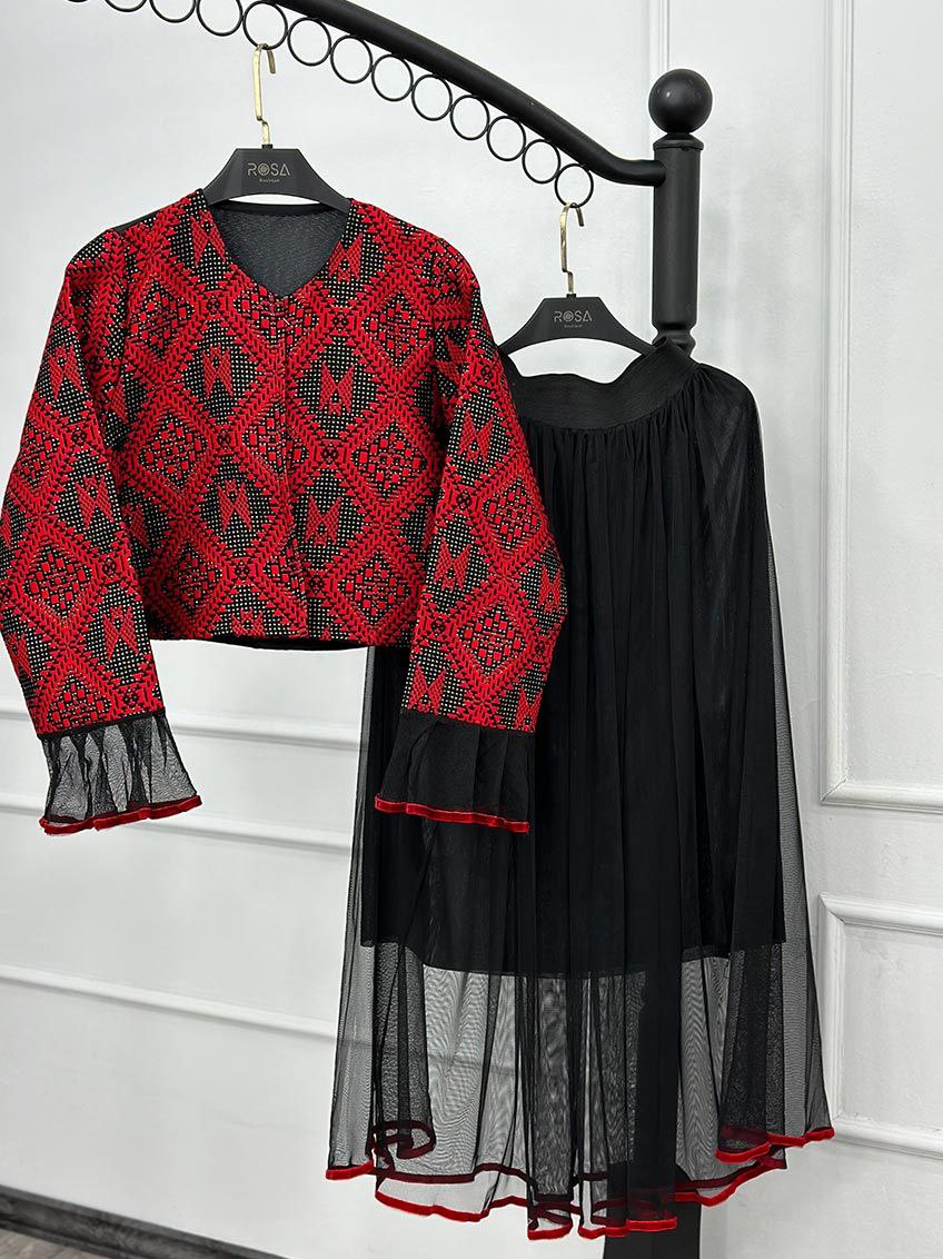 از کالکشن یلدایی ، انتخابی خاص و چشمگیر برای استایلهای مجلسی و شب یلدا است. کت از پارچه تافته براق و باکیفیت دوخته شده و دامن از تور آستردار ظریف ساخته شده که ظاهری لطیف و زنانه به شما میبخشد.