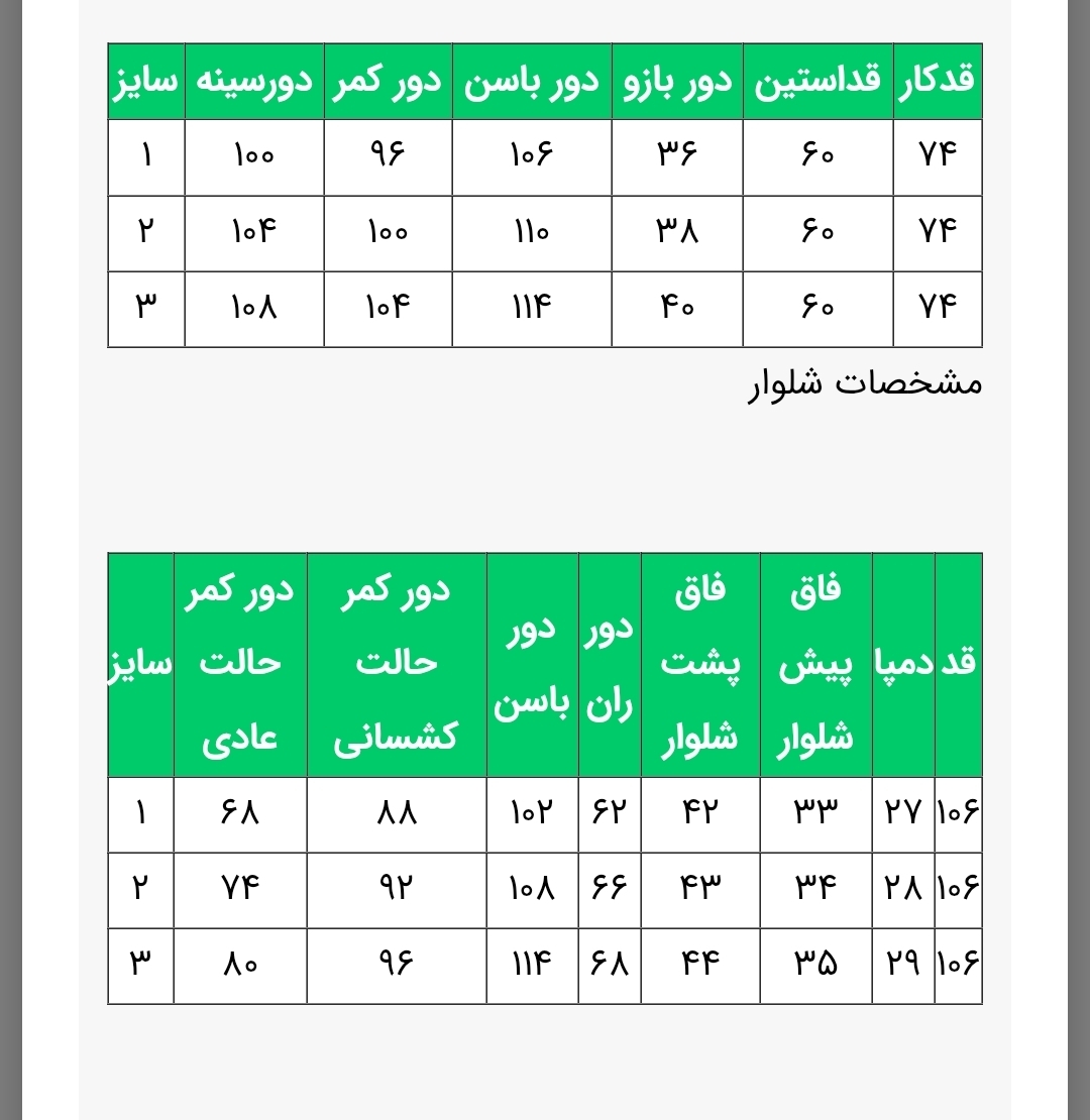 سایز 2 مناسب 42 تا 44 — دورسینه 104