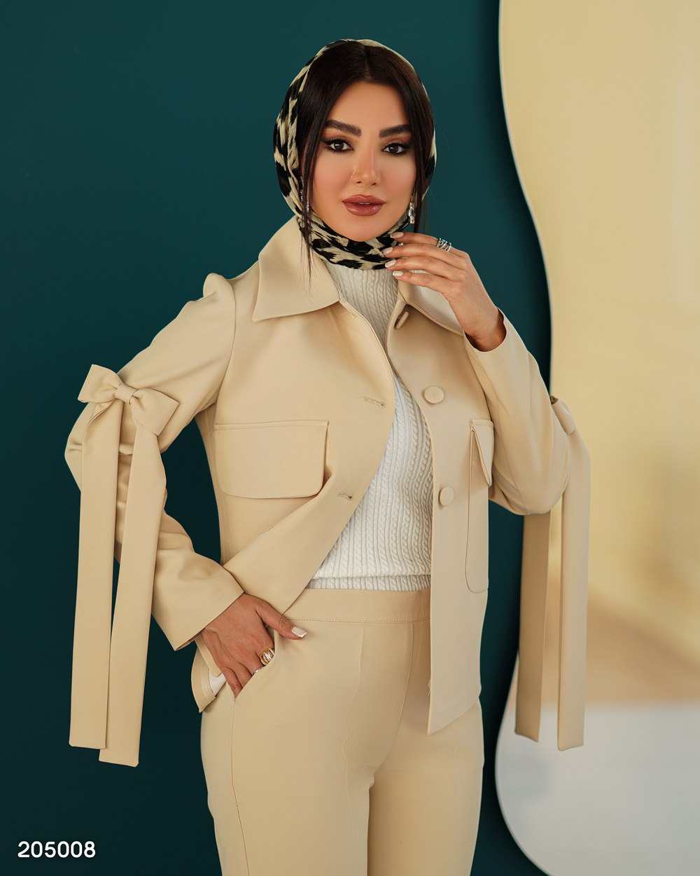 کتوشلوار مدل نیایش یک ست شیک، خوشدوخت و کاملاً رسمی برای مجالس خصوصی است. پارچهی مازراتی با ایستایی فوقالعاده، همراه با ستین پاپیوندار، استایلی مرتب و زنانه میسازد. دوخت تمیز، لاییکشی حرفهای و فرم استاندارد شلوار با کمر کش، این ست را تبدیل به انتخابی راحت و شیک برای استایلهای خاص کرده است.