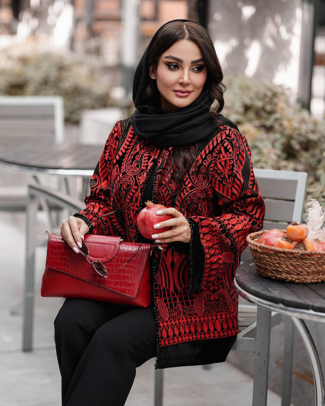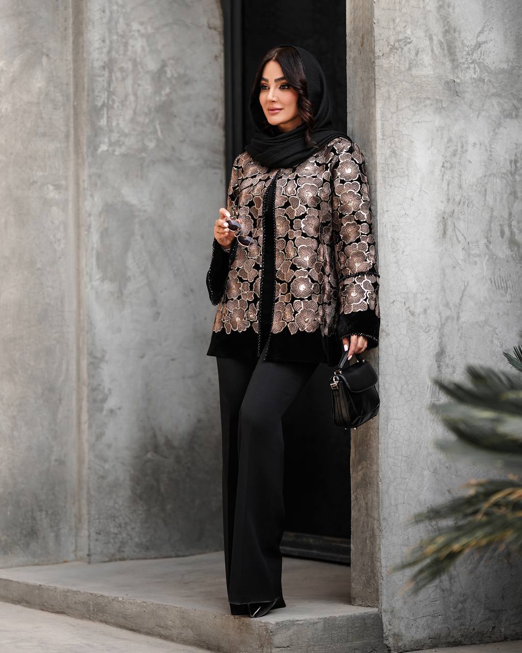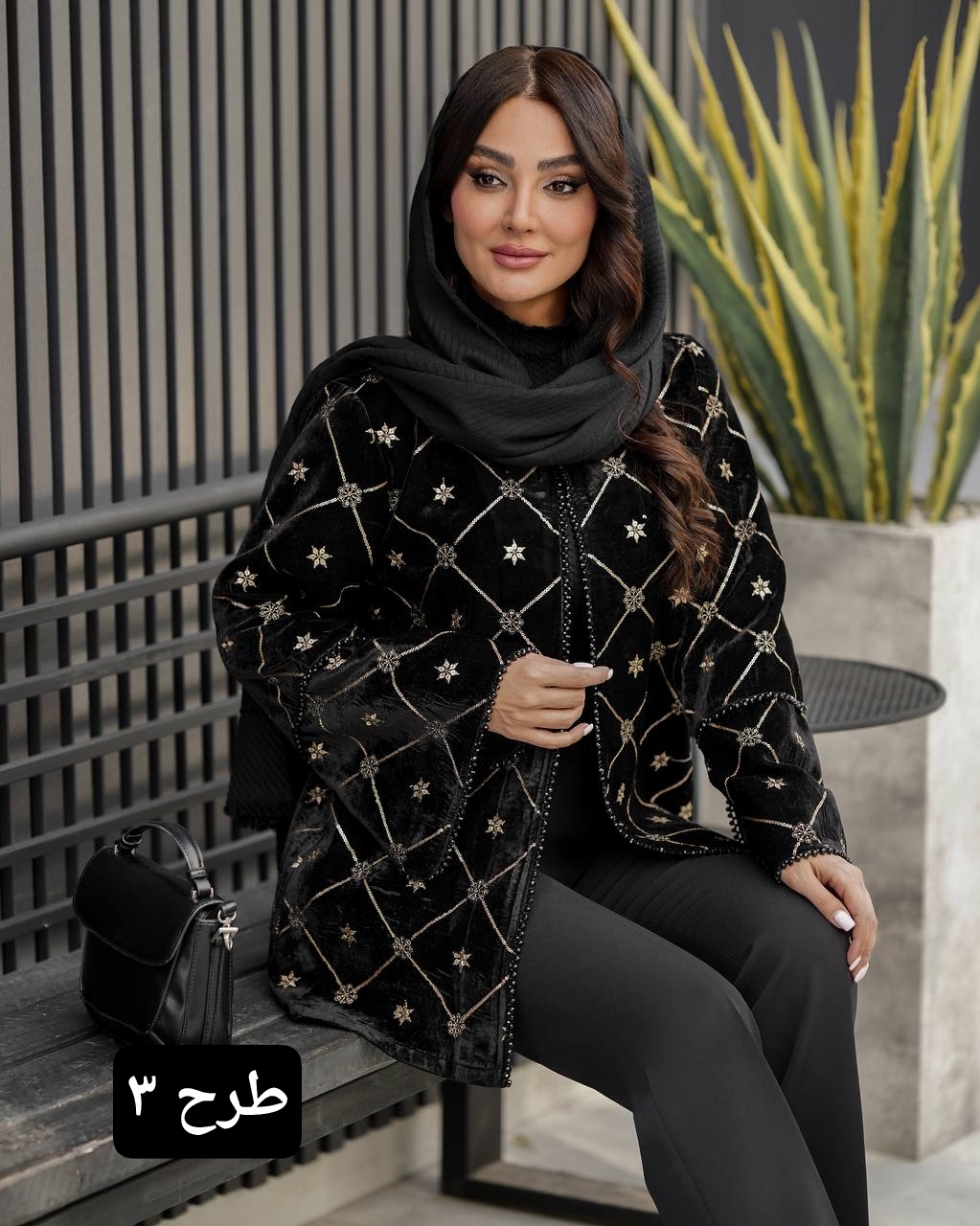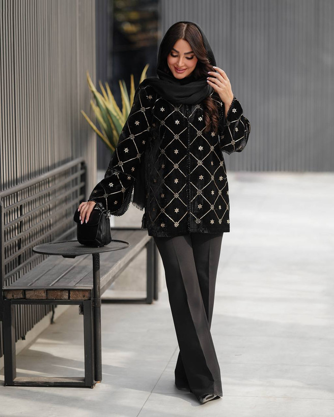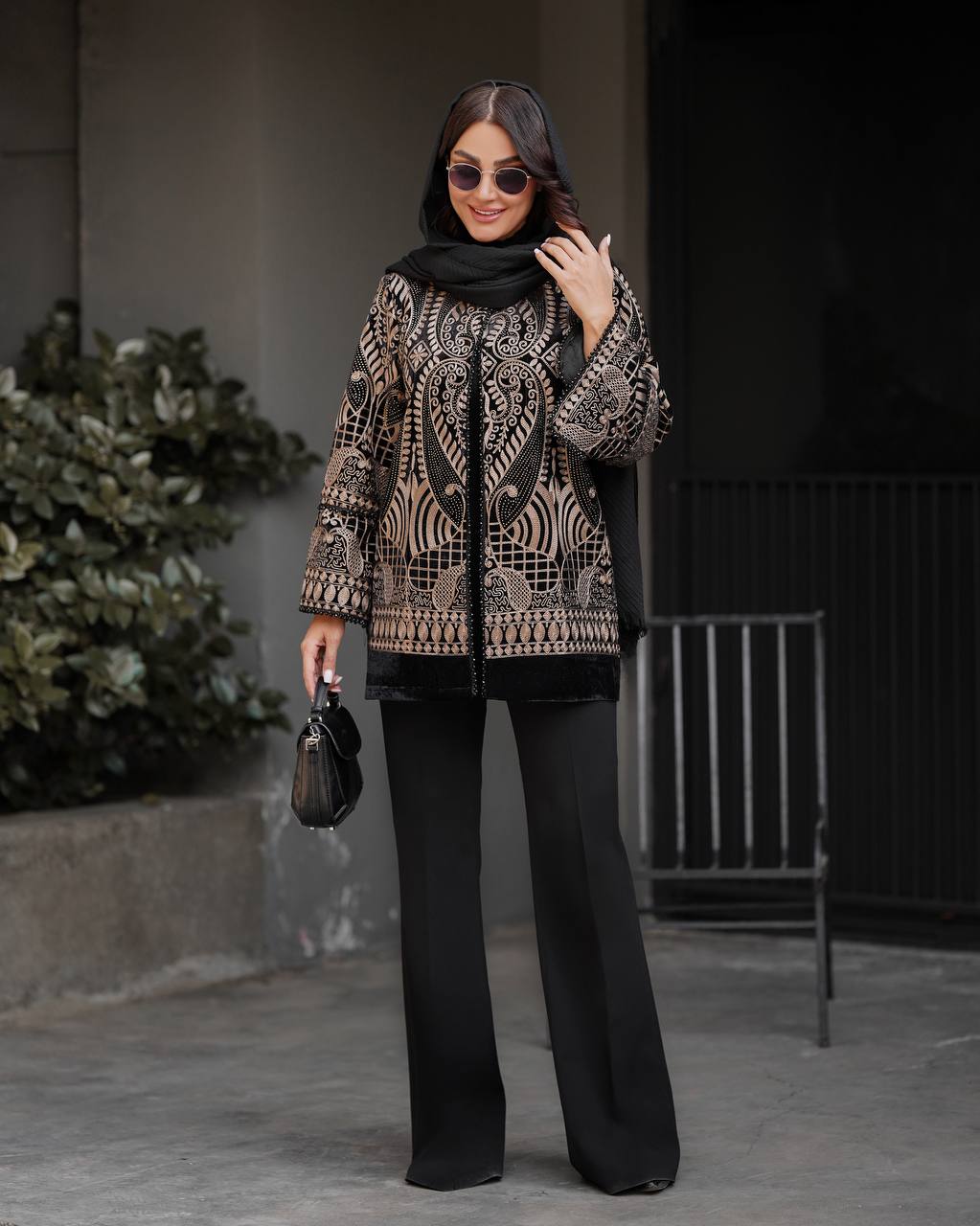 با مخمل سوزندوزی هندی انتخابی لوکس و شیک برای مهمانیها و مجالس رسمی است. این کت با یقه گرد، مغزیدوزی و نوار کریستال روی پشت و جلو کار طراحی شده و داخل آن آستر کامل با لایی پرشین قرار دارد که تنخور عالی و ایستایی مناسب ایجاد میکند مناسب برای مهمانی ها و شب یلدا