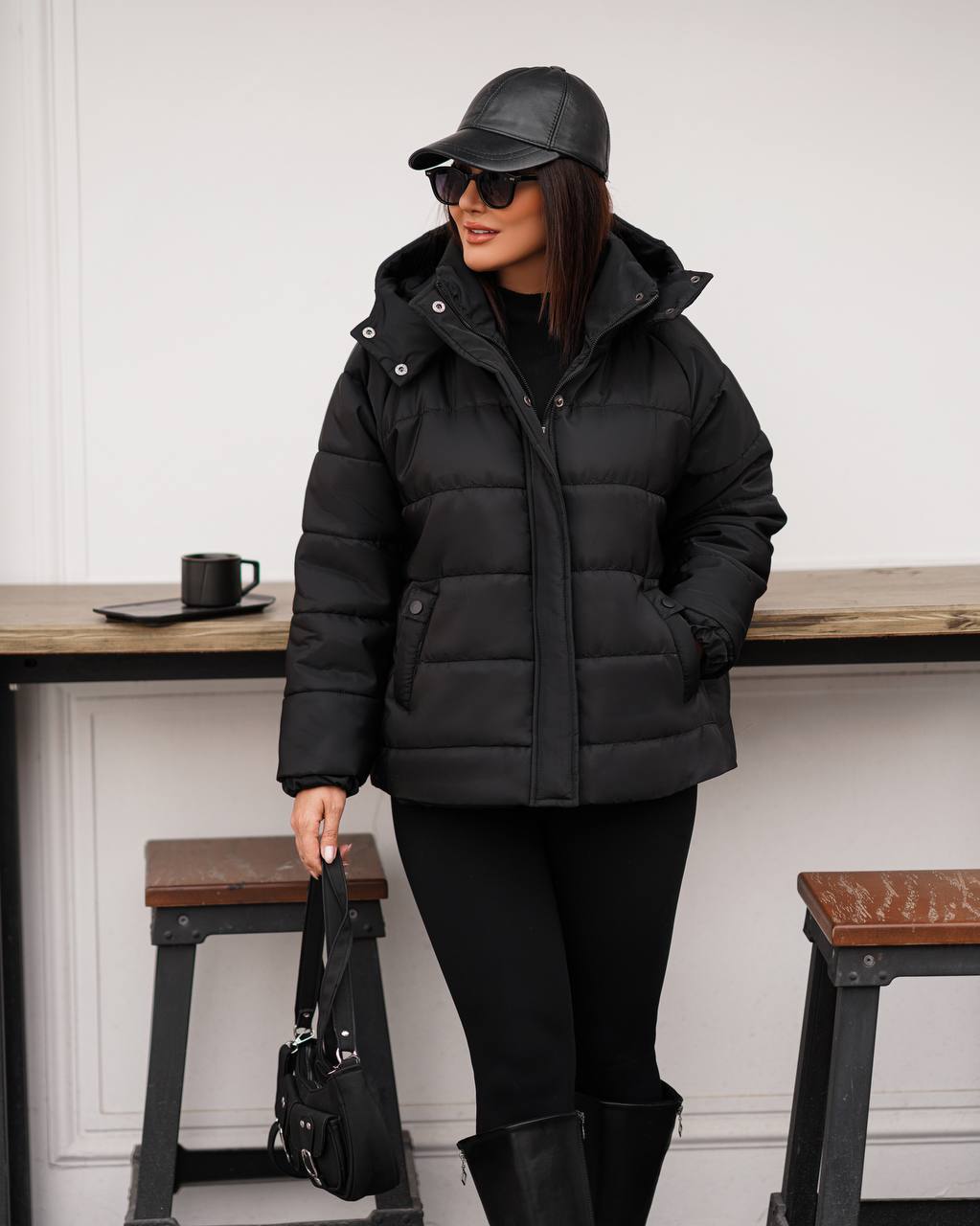 جلوی کاپشن با زیپ و دکمه باکیفیت بسته میشود و دارای جیبهای کاربردی است. طراحی کوتاه، کلاهدار و استایل آزاد آن، این مدل را برای استفاده روزمره و استایلهای زمستانی بسیار مناسب کرده است.