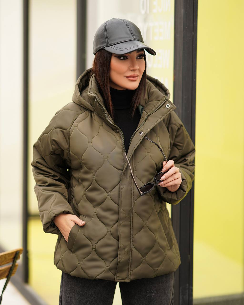 کاپشن کلاهدار کوتاه زنانه مموری پشم شیشه دار مدل گلنوش سایز فری تا ۴۶ ضمانت کالا