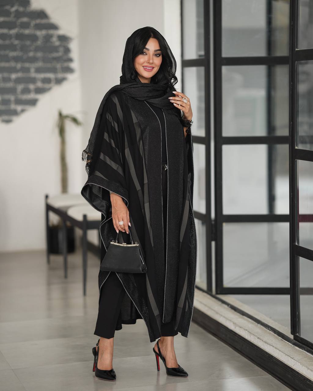 ترکیب پارچه شانتون اندونزی جت بلک در پشت کار و کرپ طرحدار خنک و درجه یک در پیشکار، جلوهای لوکس و چشمنواز به این مانتو داده است. طراحی پانچ بلند، استایلی آزاد، مدرن و بسیار خاص ایجاد میکند که هم برای مهمانی و هم استایل روزمره شیک قابل استفاده است.