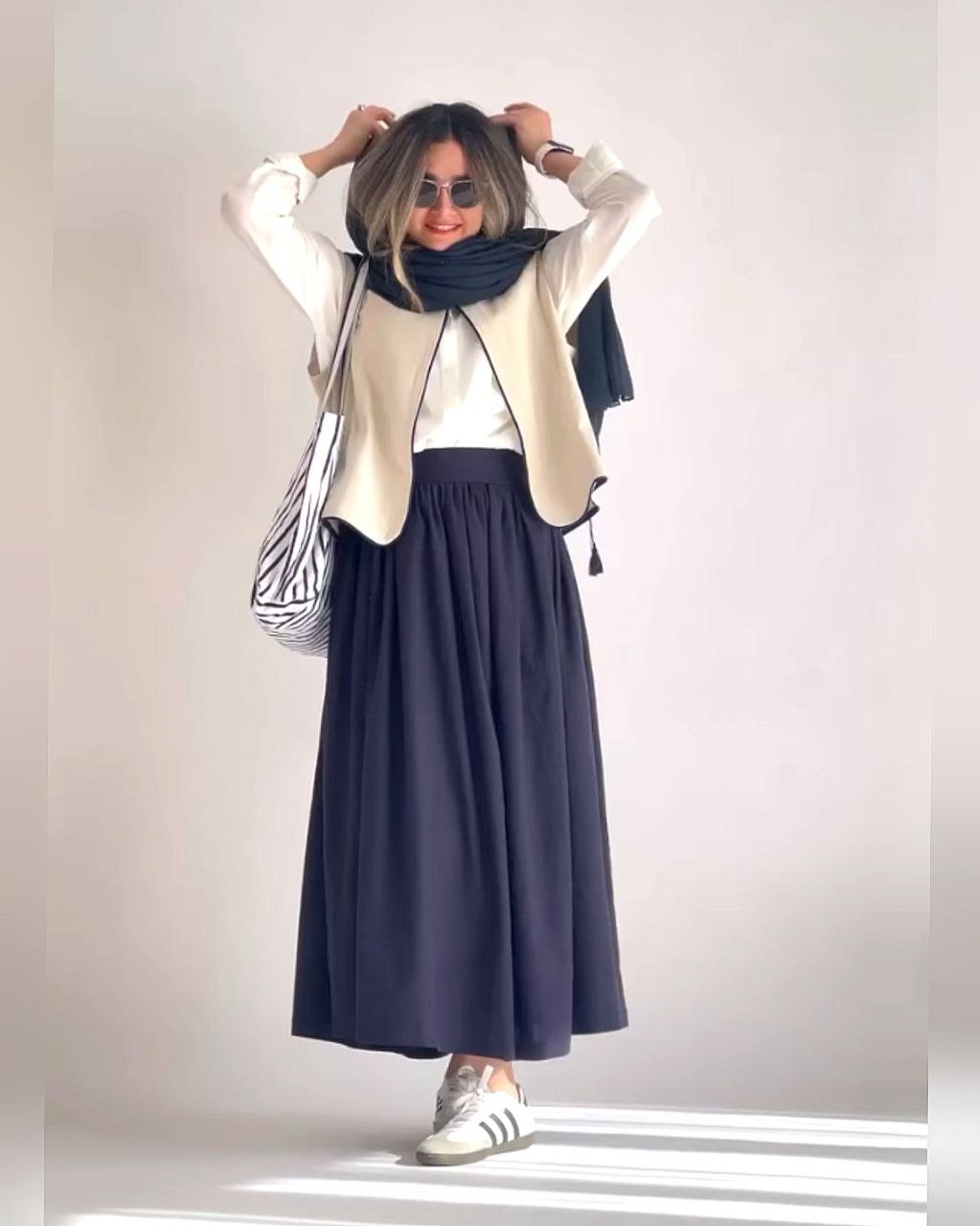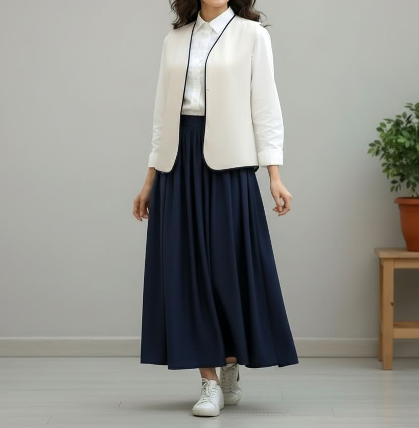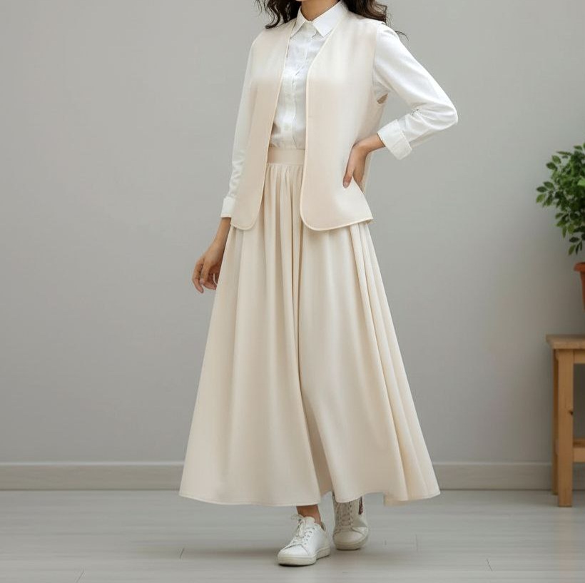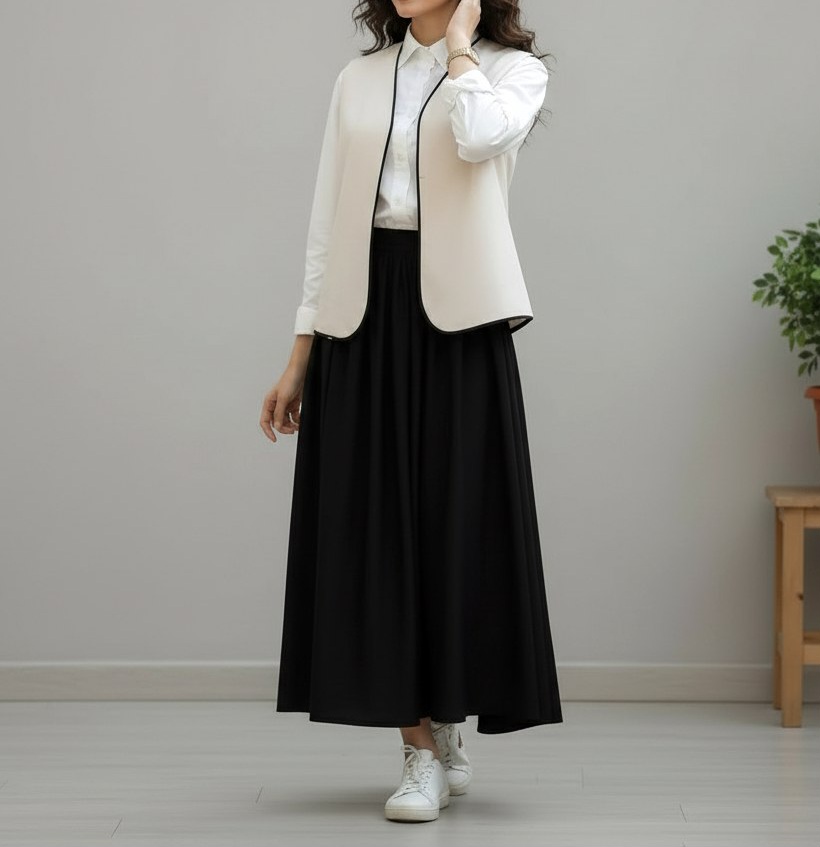 ست جلیقه و دامن زنانه کتان پلاس مدل سرمه سایز فری تا ۴۶ ضمانت اصالت کالا