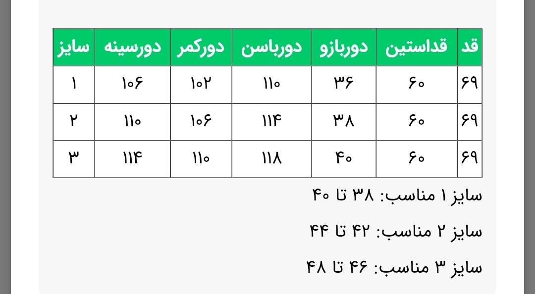 جدول سایز