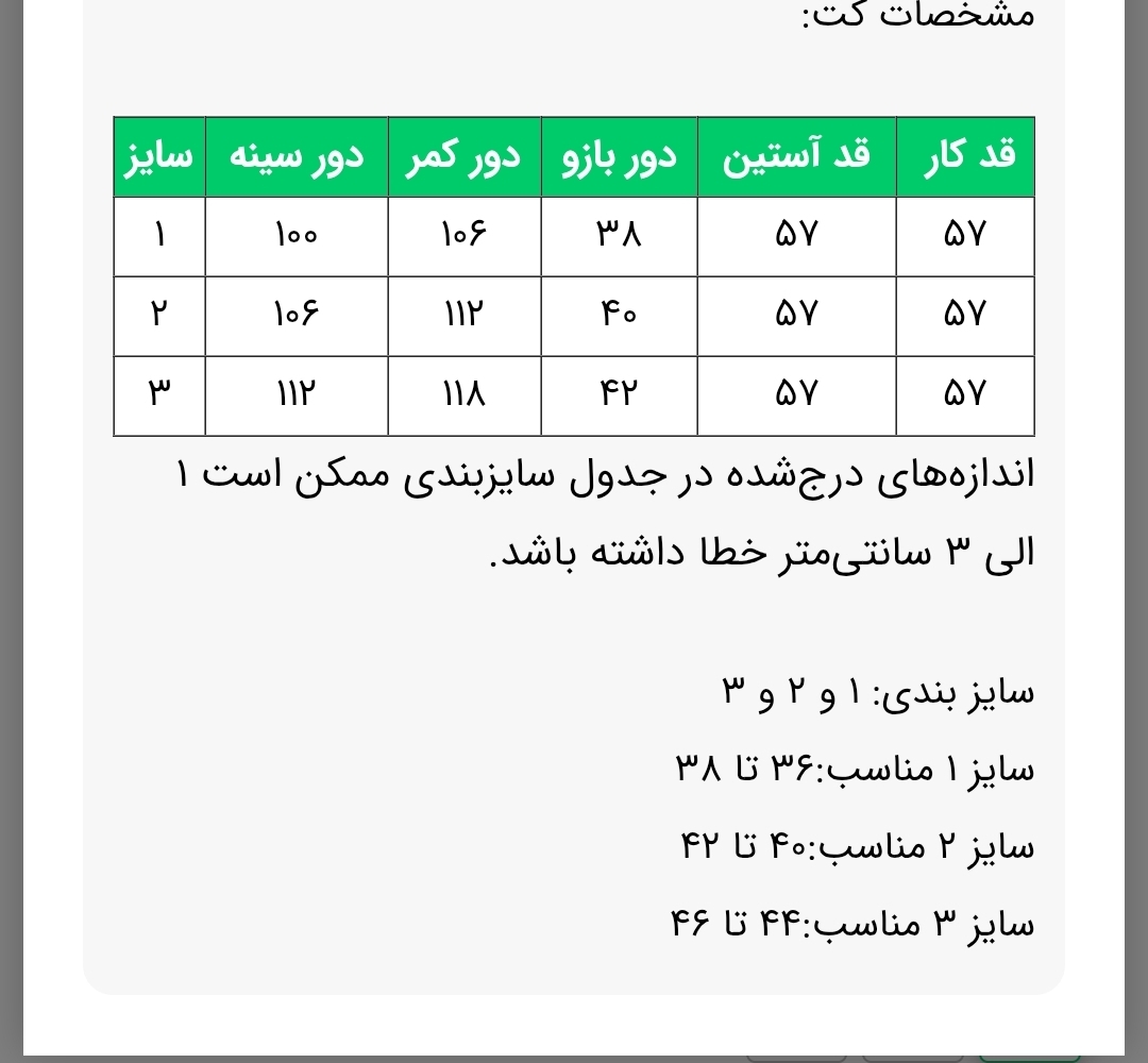 سایز ۳: مناسب ۴۴ تا ۴۶ | دور سینه ۱۱۲
