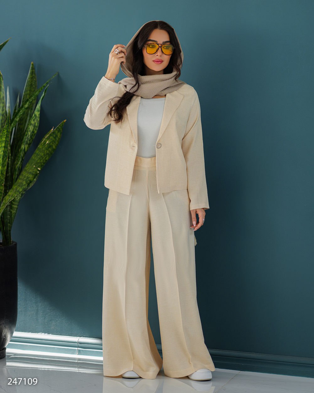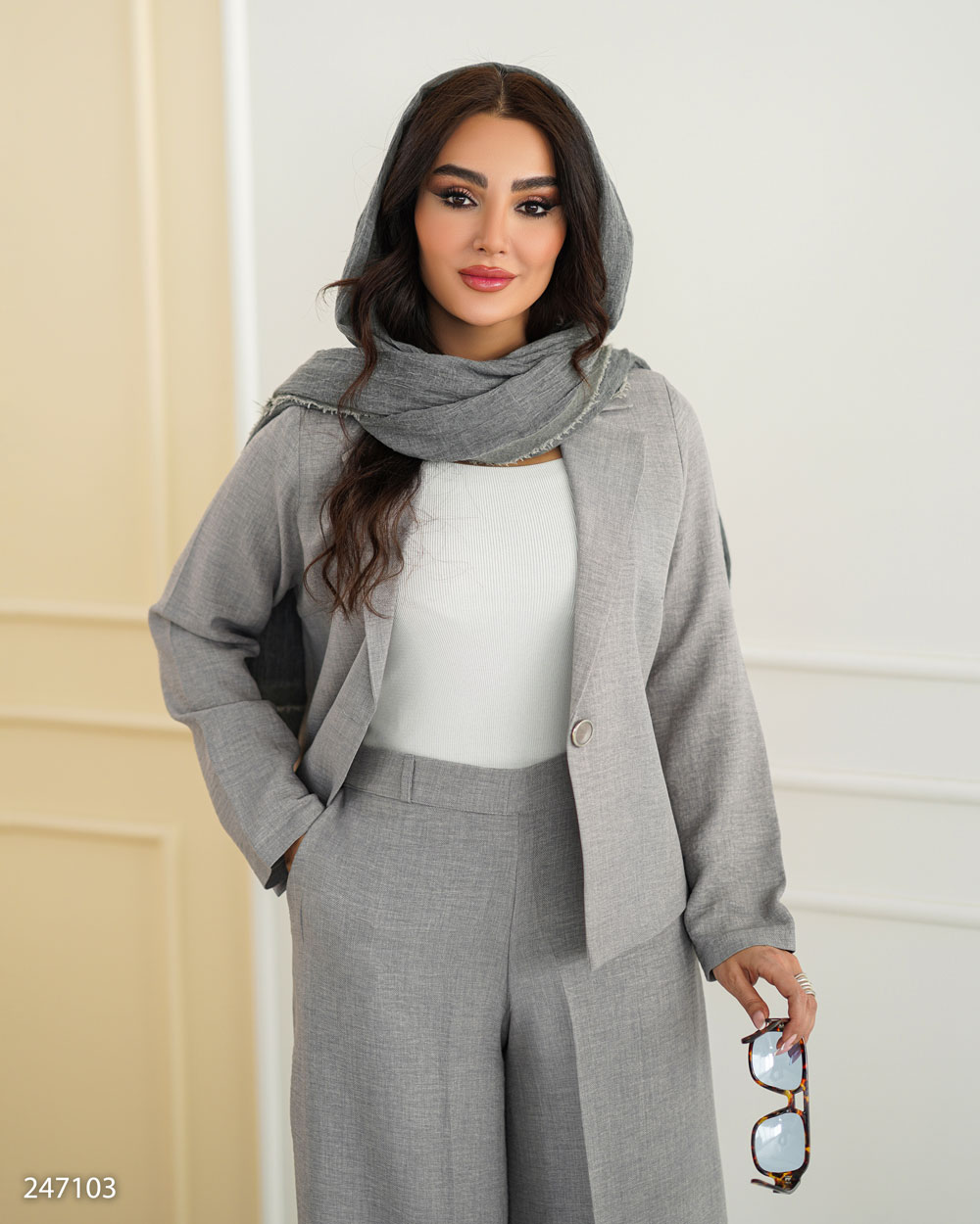 یک انتخاب شیک و کاربردی برای خانمهایی است که بهدنبال استایلی نیمه رسمی و درعینحال راحت هستند. این ست با طراحی کراپ کت یقه انگلیسی و شلوار خوشفرم، گزینهای ایدهآل برای مهمانیها، دورهمیها و حتی استایلهای روزمره خاص محسوب میشود.