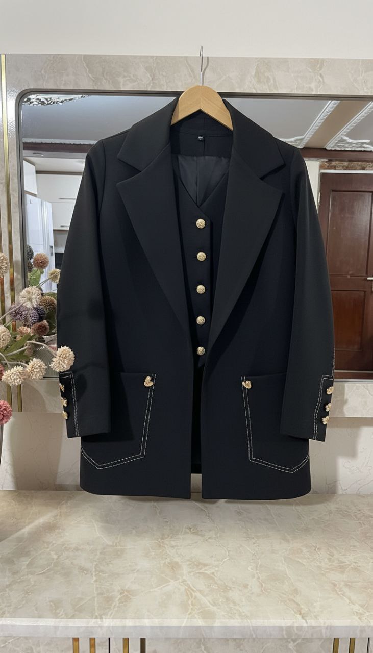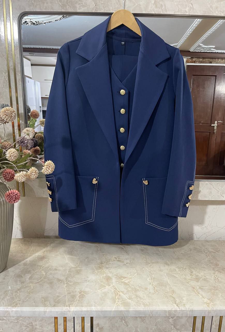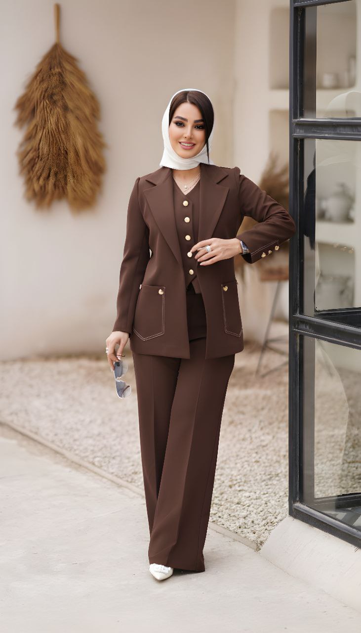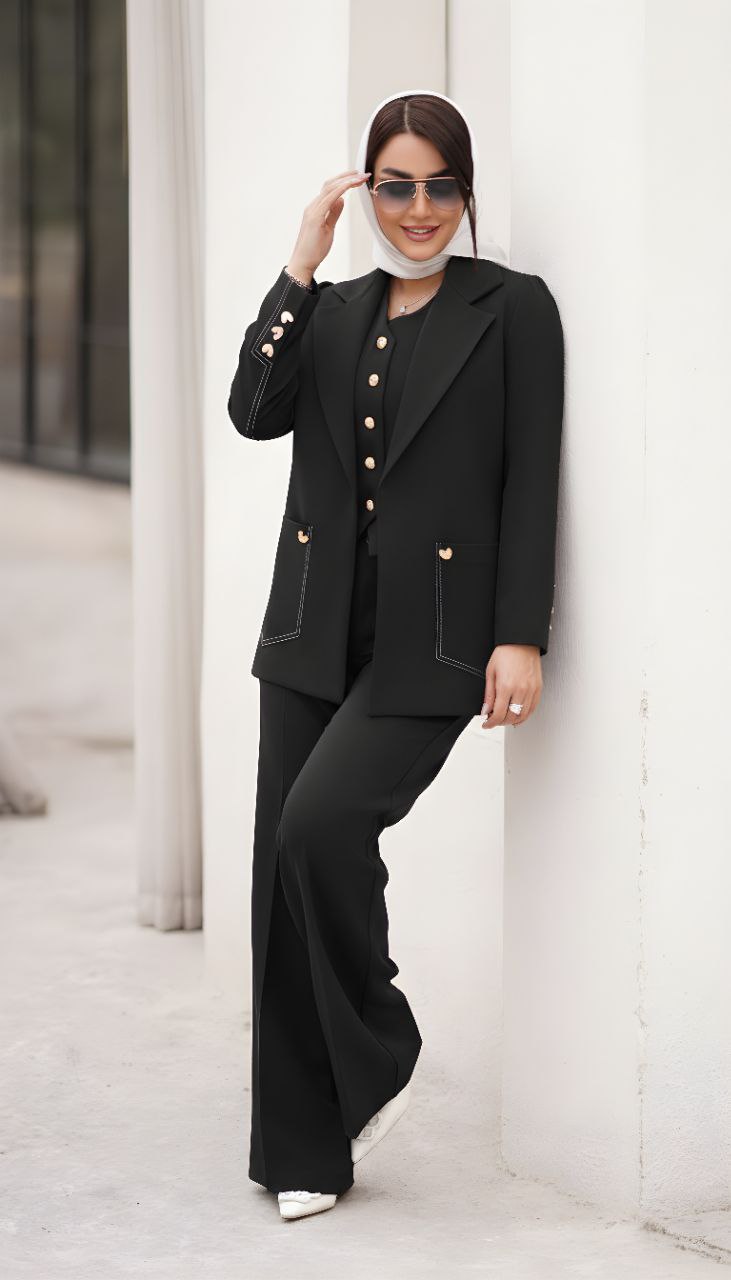انتخابی خاص و حرفهای برای بانوانی است که به استایلهای شیک، منظم و مزونی علاقه دارند. این ست شامل کت، شلوار و جلیقه بوده و با طراحی هماهنگ و تنخور مهندسیشده، استایلی چشمگیر و رسمی ایجاد میکند.