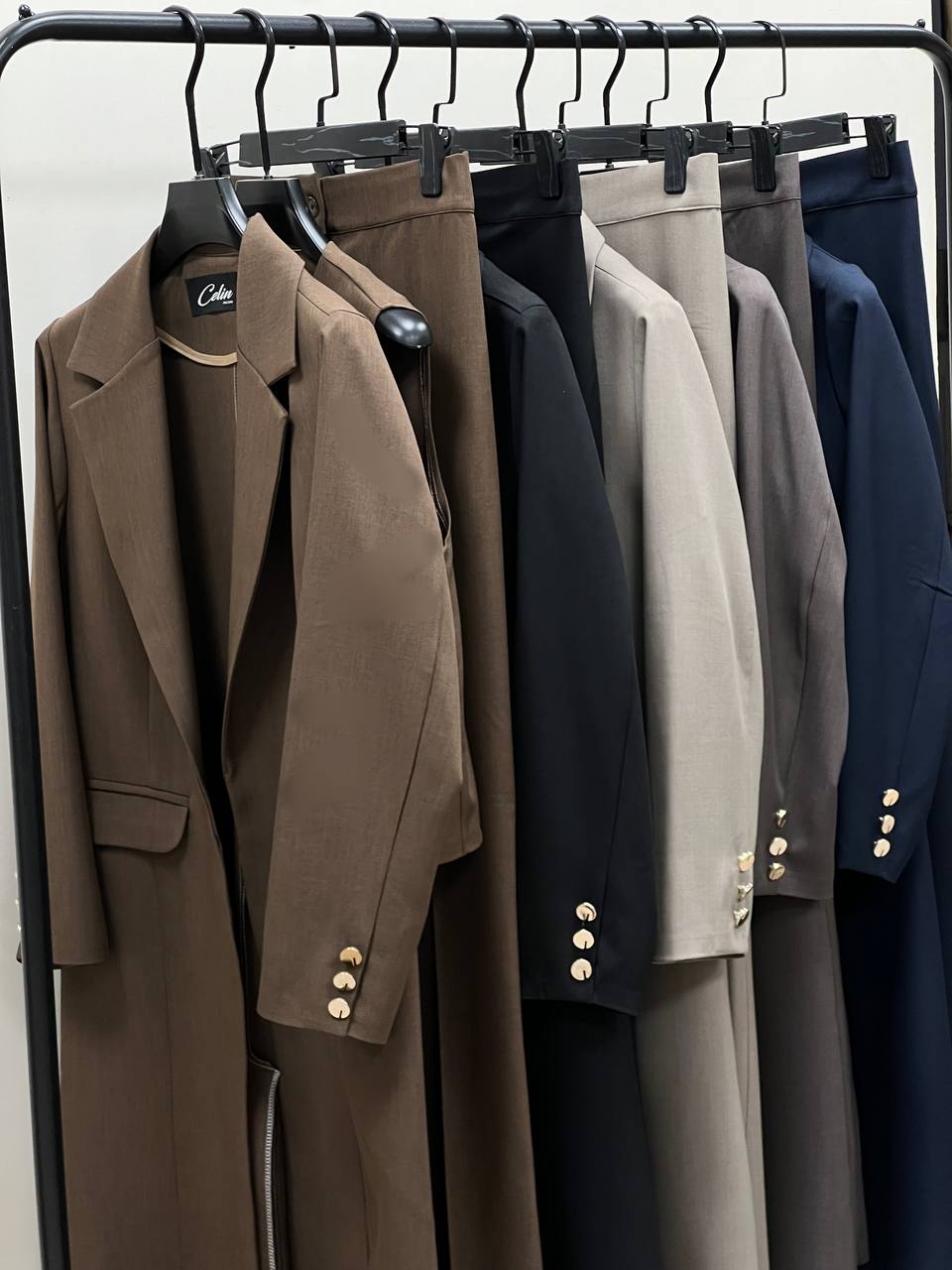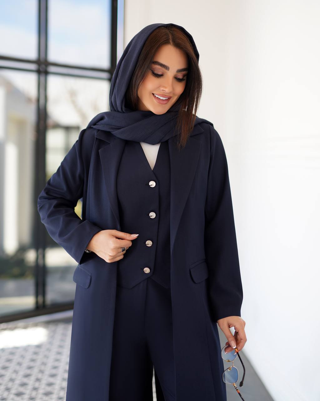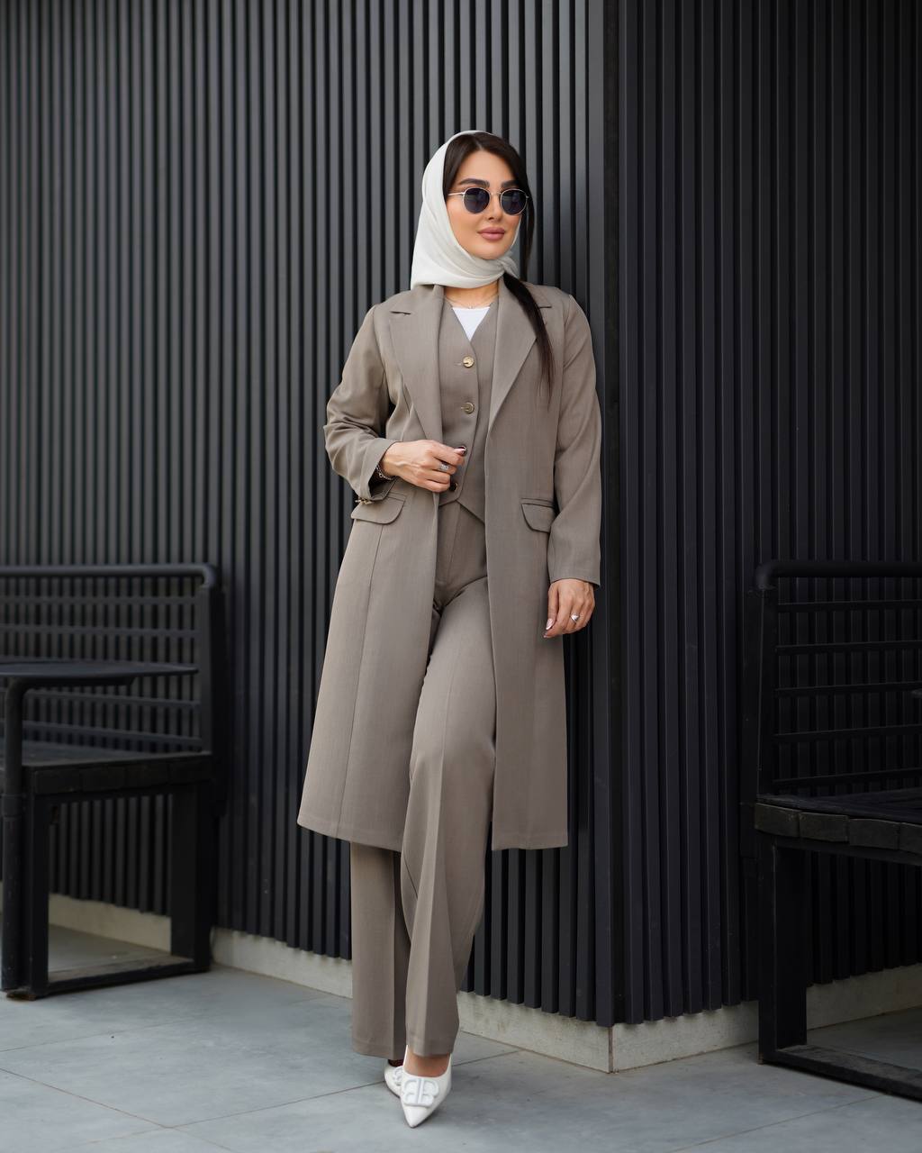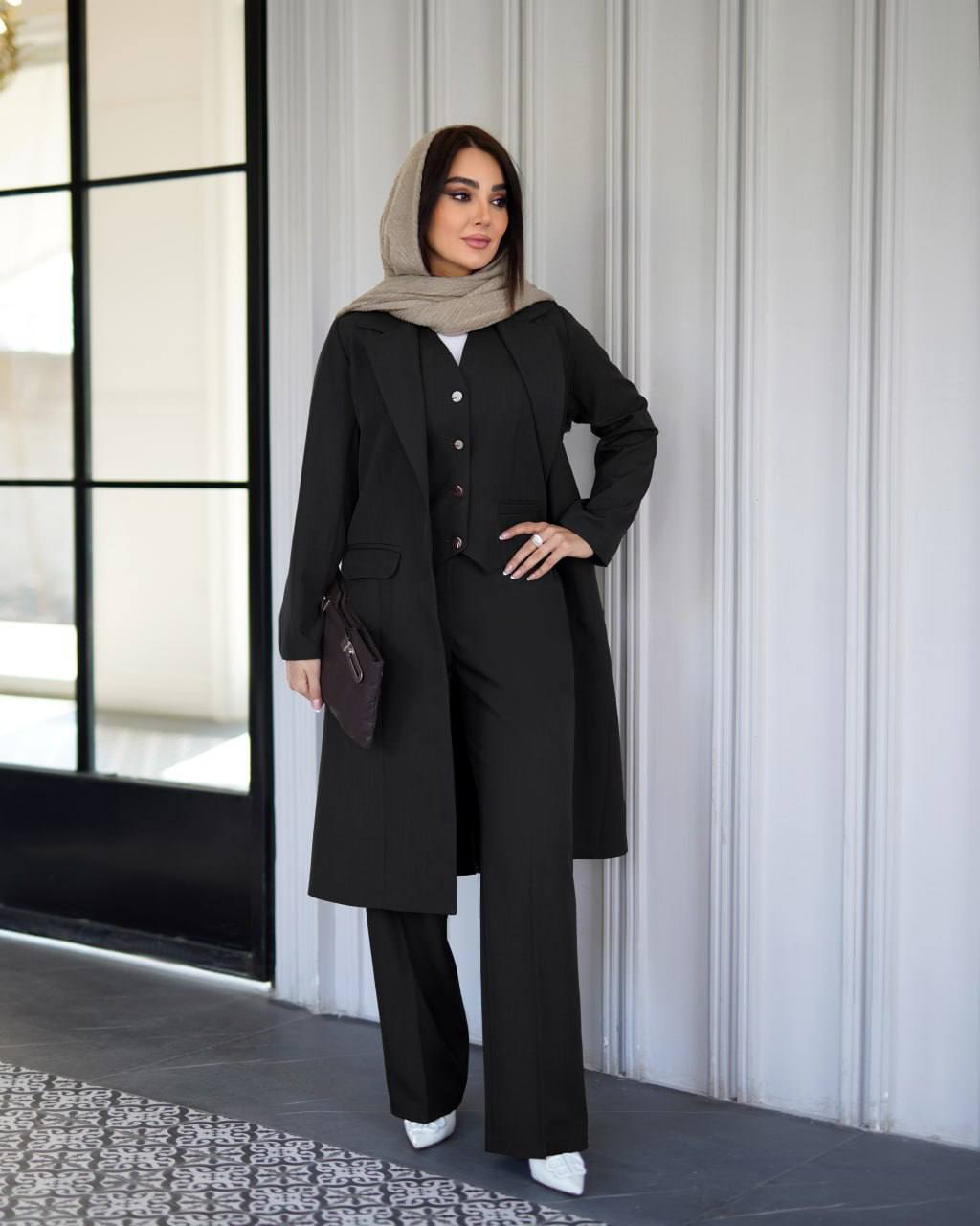 انتخابی خاص و شیک برای بانوانی است که به استایلهای رسمی و مزونی علاقه دارند. این ست شامل کت بلند، ژیله و شلوار بوده و با پارچه بزیاق درجه یک و طراحی حرفهای، تنخوری مرتب و جذاب ایجاد میکند.