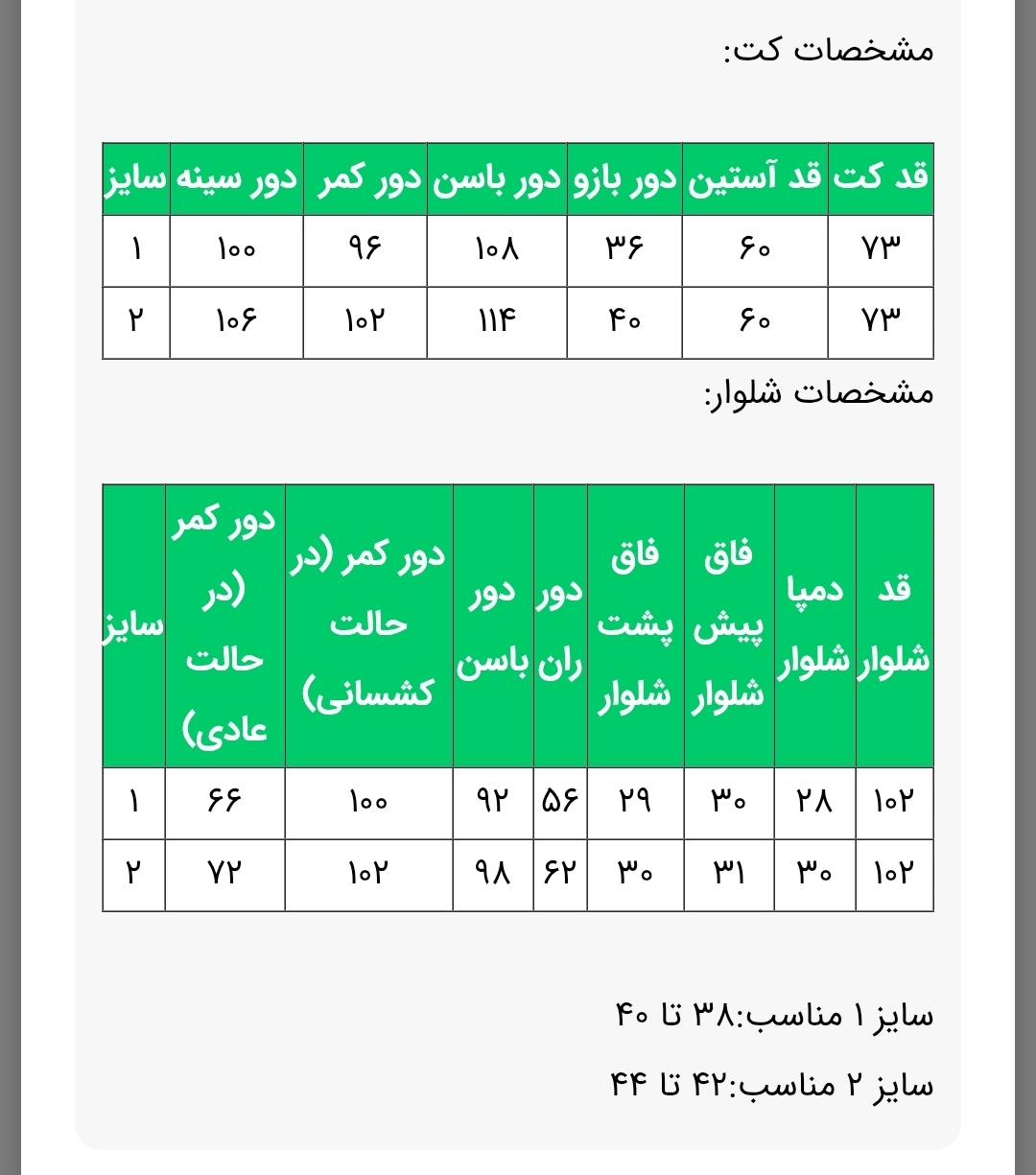 سایز 1 مناسب 38 تا 40 — دور سینه 100