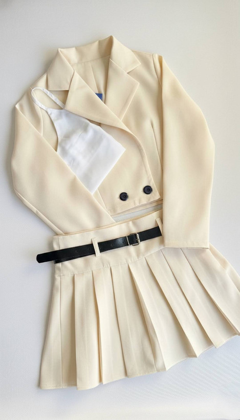 ترکیبی شیک، ترند و کاملاً پینترستی برای بانوانی است که استایلهای مینیمال و امروزی را میپسندند. این ست با پارچه کتان پلاس گرمبالا دوخته شده که علاوه بر ظاهر مرتب و خوشفرم، دوام و ایستایی عالی دارد. کت فریسایز با قد کوتاه، استایلی جوانپسند و مدرن ایجاد میکند و دامن کمری با زیپ مخفی، فرم بدن را خوشتراشتر نشان میدهد.