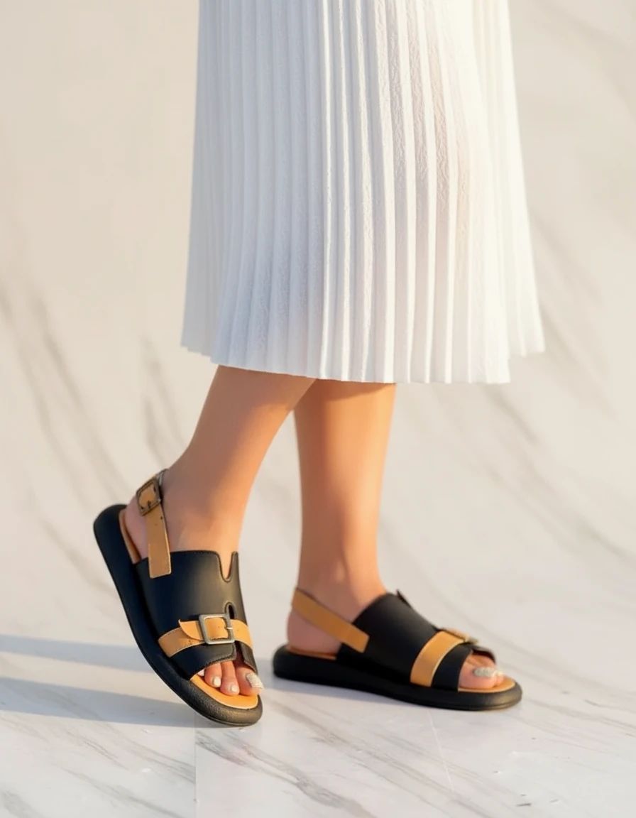 کفی نرم و طراحی ارگونومیک باعث میشود پاها کمتر خسته شوند و بتوانید ساعتها بدون احساس ناراحتی از آن استفاده کنید. ظاهر جمعوجور و استایل شیکش، این صندل را به گزینهای محبوب برای استفاده در فصلهای گرم تبدیل کرده است.